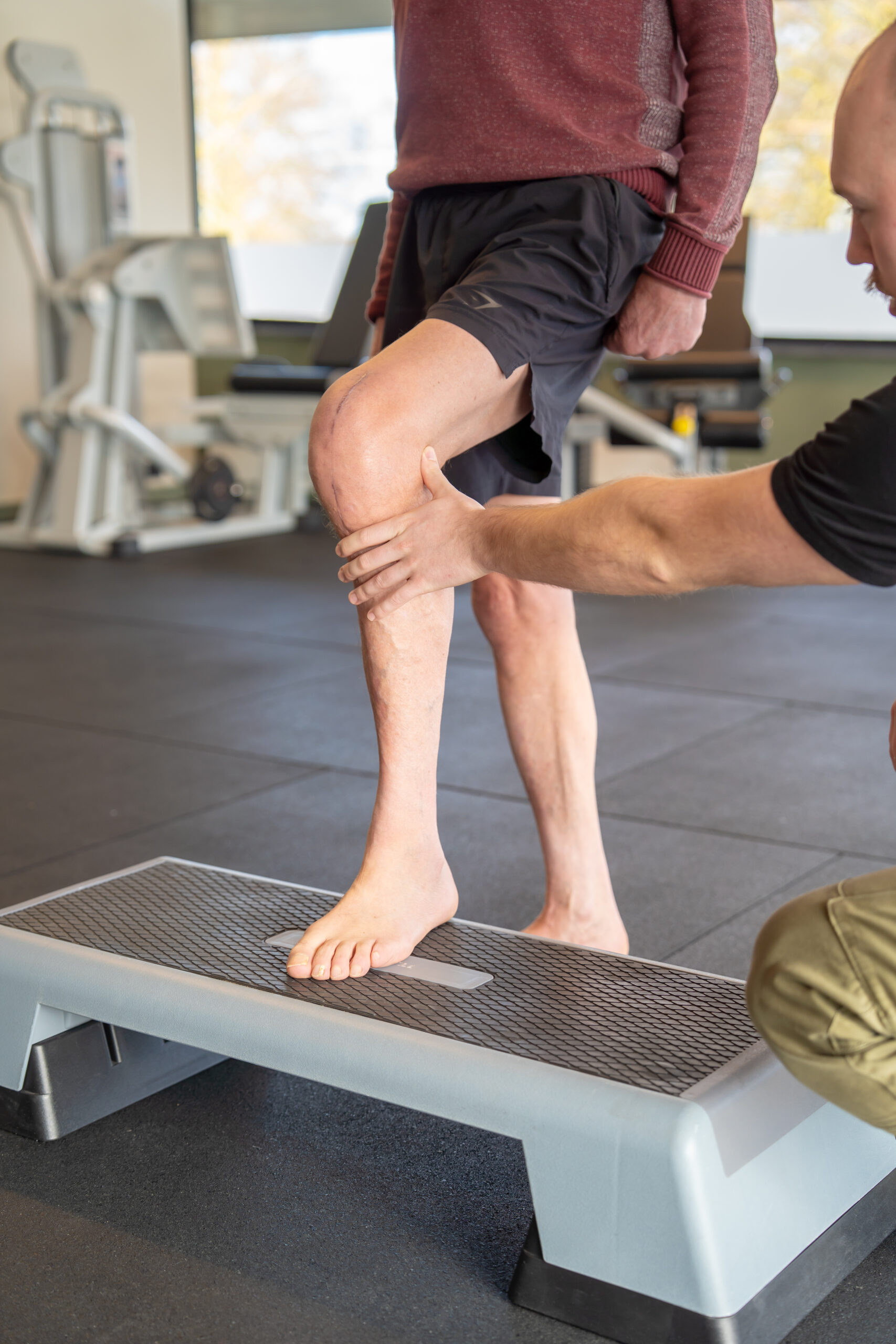 Moderne oefenapparatuur voor kracht-, stabiliteit- en functionele training afgestemd op knieklachten.